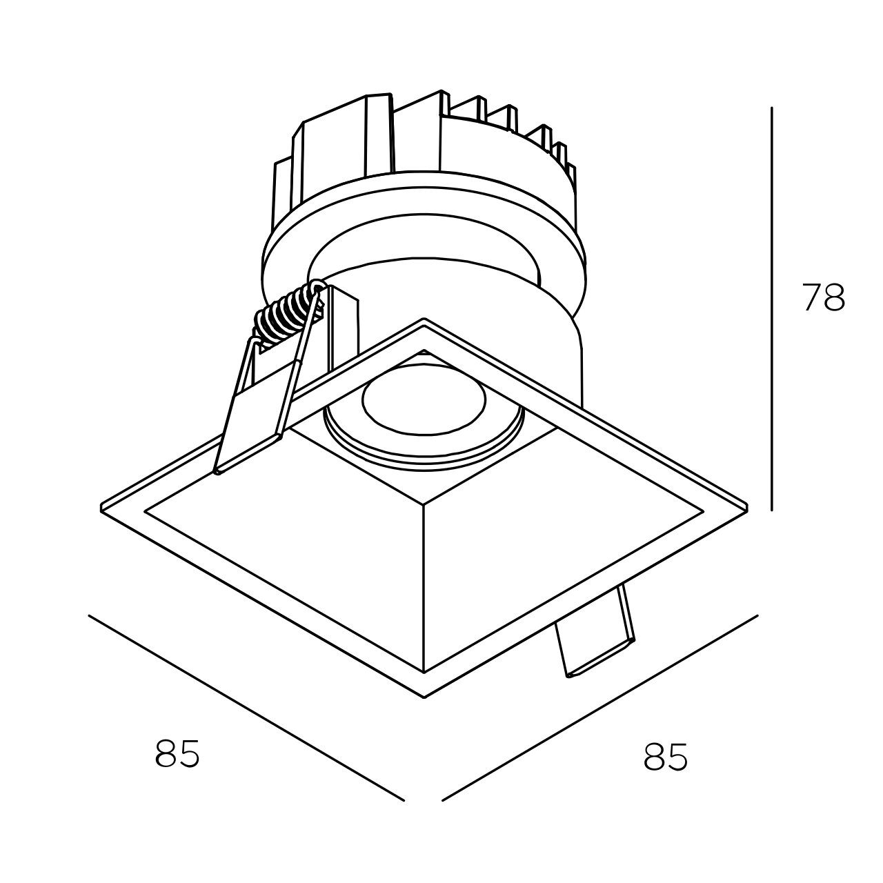 Размер монтажного отверстия — 75мм х 75 мм.