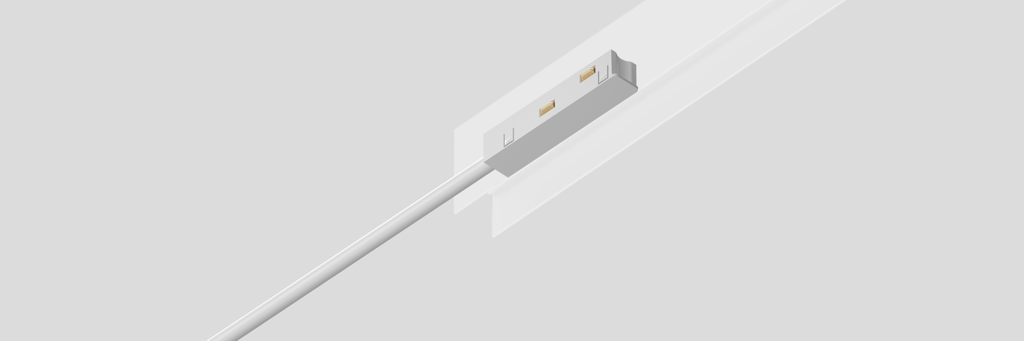 Выполнен из чёрного пластика с токопроводящими медными контактами и после установки в трек абсолютно незаметен.
