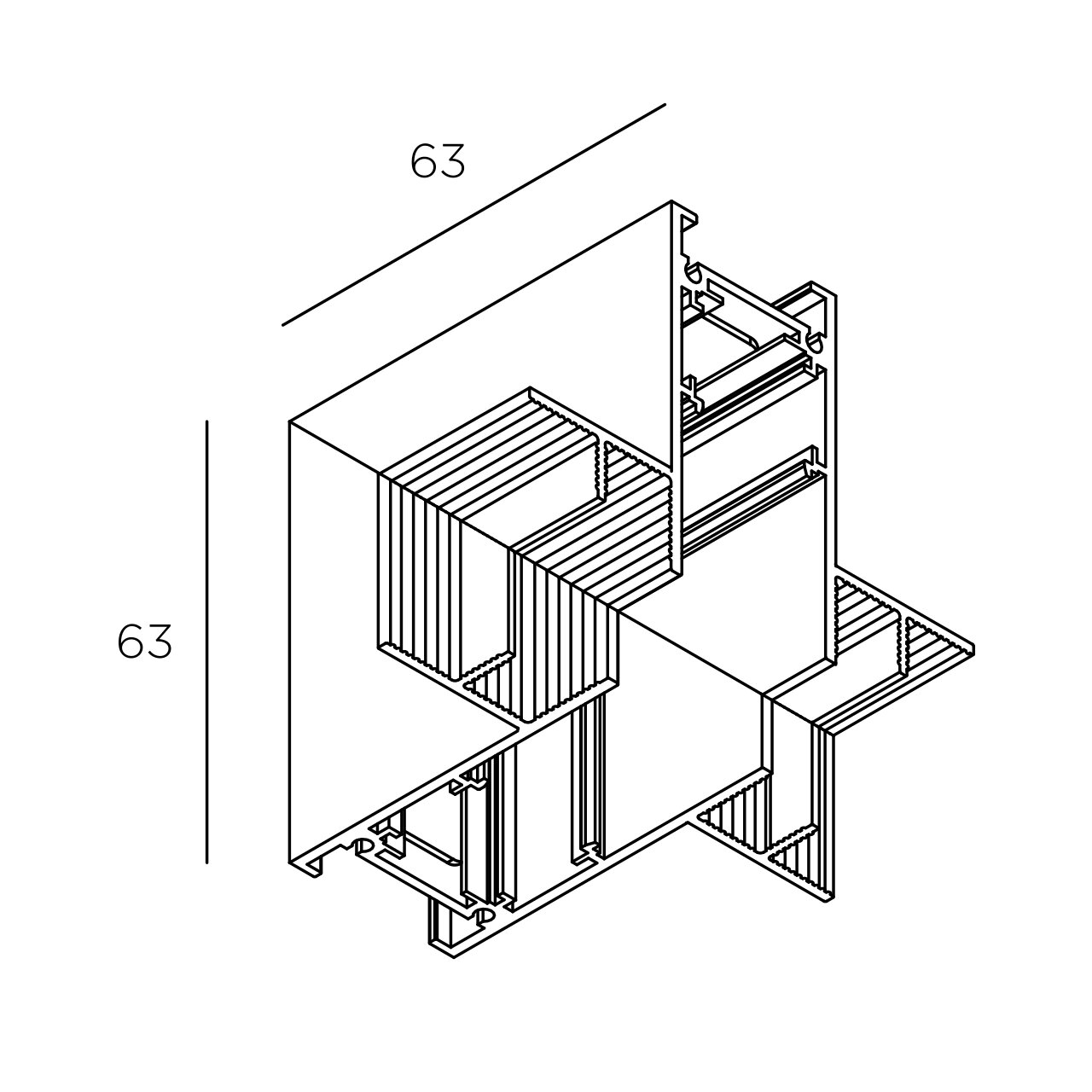 Соединительный элемент трека, который является неотъемлемой частью системы и позволяет сделать переход линии под углом 90 градусов в двух плоскостях, например, с потолка на стену.