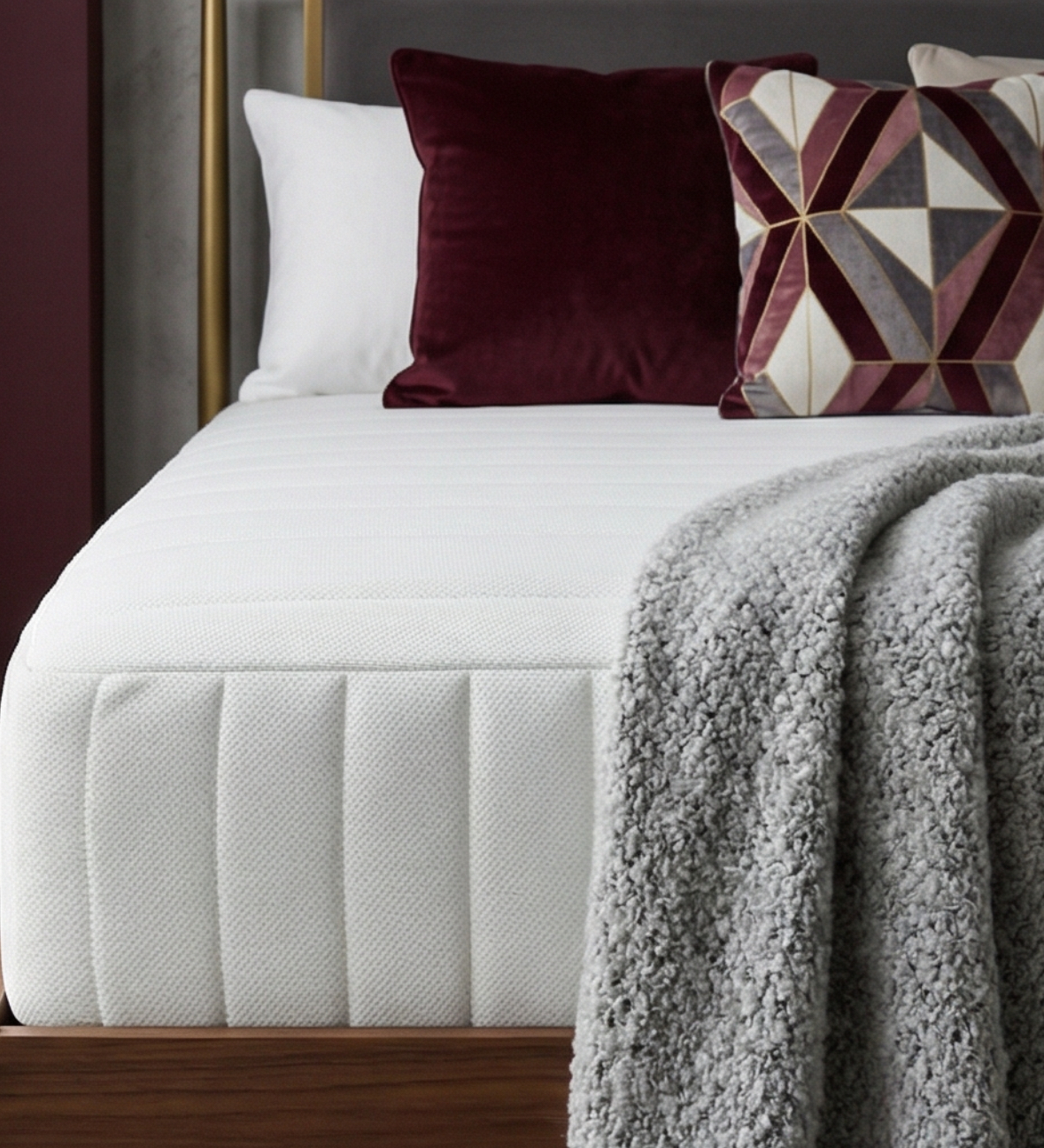 Бурлет матраса выполнен из трикотажной ткани, простеганной на объемном наполнителе. Ткань бурлета мягкая и приятная на ощупь.