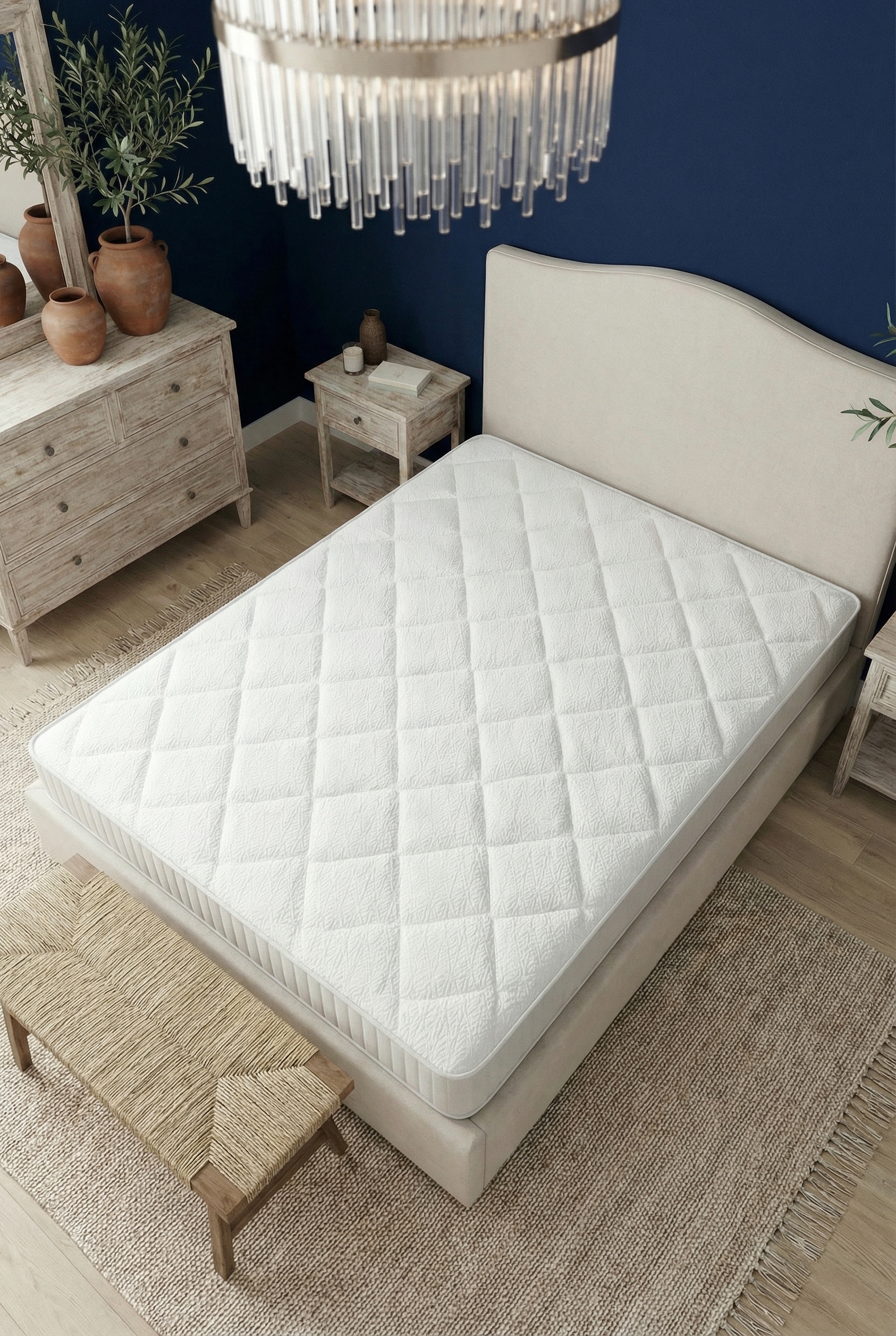 Природный, экологически чистый материал, состоящий из шерстяных волокон, изготовленный посредством термического скрепления волокон в массе.Повышает упругость матраса и защищает мягкое наполнение от механического воздействия пружинного блока.