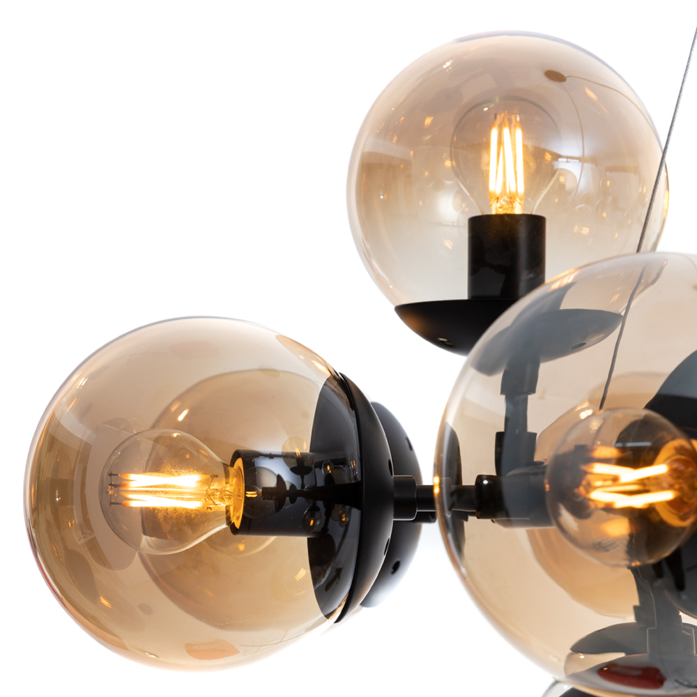 Люстра Arte Lamp A1664SP-25BK серии BOLLA. Подчеркнет стиль помещения. Размеры 100x100x38 cm. Диаметр 100 cm Параметры пылевлагозащиты IP — 20. Форма шарообразная. Плафон стеклянный цвета янтаря, а материал/цвет арматуры металл/черный. Использует 25 ламп с цоколем E14. Площадь освещения охватывает 75 m². Идеально подходит для больших залов. Страна происхождения бренда — Италия. Вес с упаковкой 11.8 kg