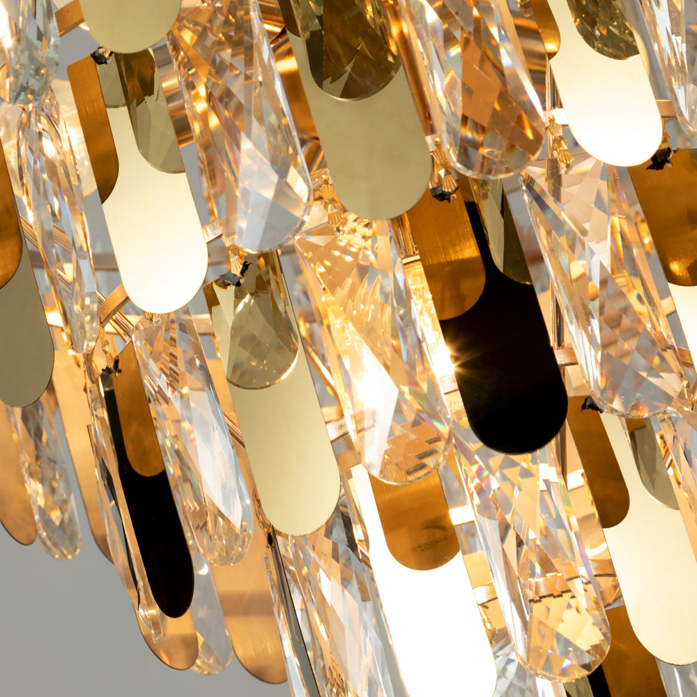 Люстра Arte Lamp A2719SP-8GO серии VIVIEN. Подчеркнет стиль помещения. Высота 43 cm. Диаметр 54 cm Параметры пылевлагозащиты IP — 20. Плафон стеклянный прозрачный, а материал/цвет арматуры металл/золотистый. Использует лампу с цоколем E27. Площадь освещения охватывает 18 m². Страна происхождения бренда — Италия. Вес с упаковкой 9.2 kg