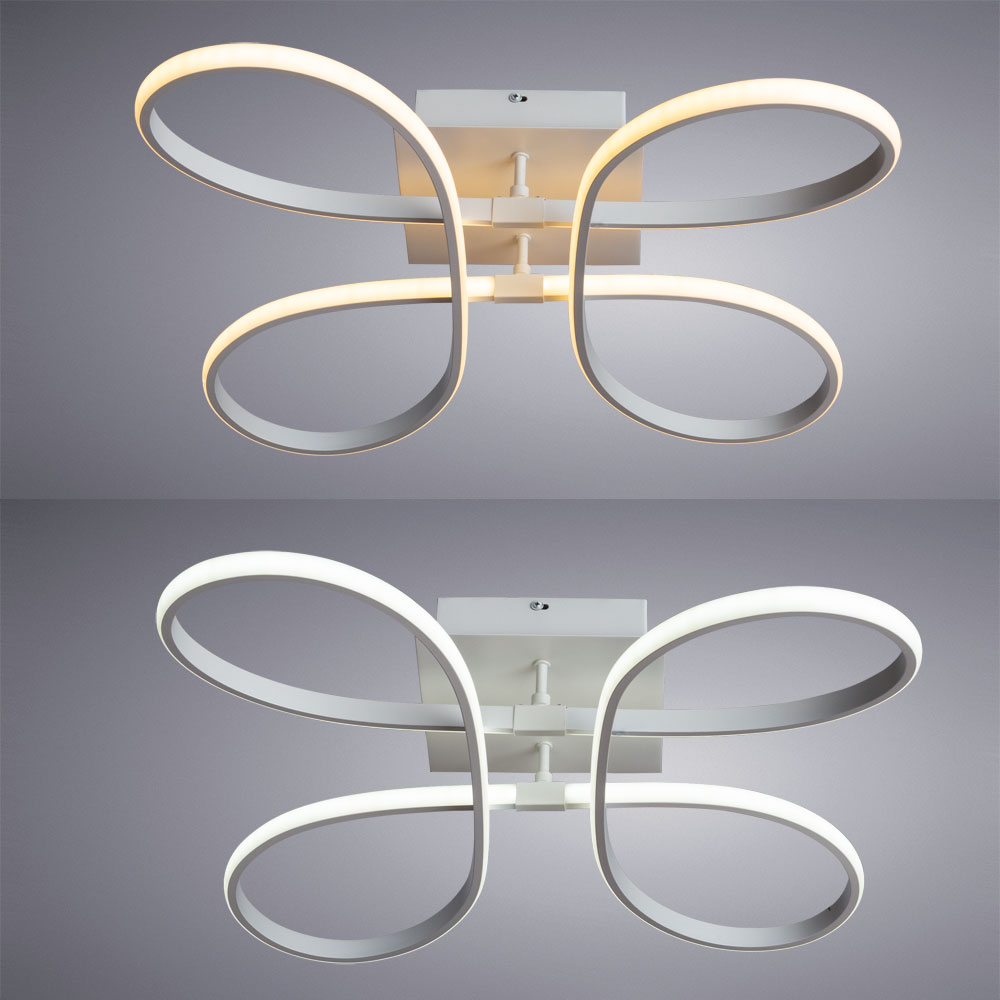 Лаконичный стиль идеально впишется в современные интерьеры. Для более комфортной регулировки световой температуры и яркости в комплекте идет ПДУ. Благодаря потолочному креплению, Люстраи подойдут даже в помещения с низкими потолками.