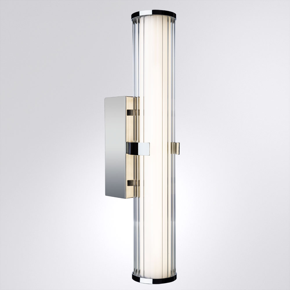 Светильник Divinare 1017/02 AP-18 серии GRIGIO. Подчеркнет индивидуальность вашего интерьера. Размеры 9x14x42 cm. Параметры пылевлагозащиты IP — 44. Плафон стеклянный прозрачный, а материал/цвет арматуры металл/хром. Имеются встроенные светодиодные лампы, рассчитанные на весь срок службы светильника. Площадь освещения охватывает 2 m². Идеально подходит для ванной. Страна происхождения бренда — ИТАЛИЯ. Вес с упаковкой 1.6 kg