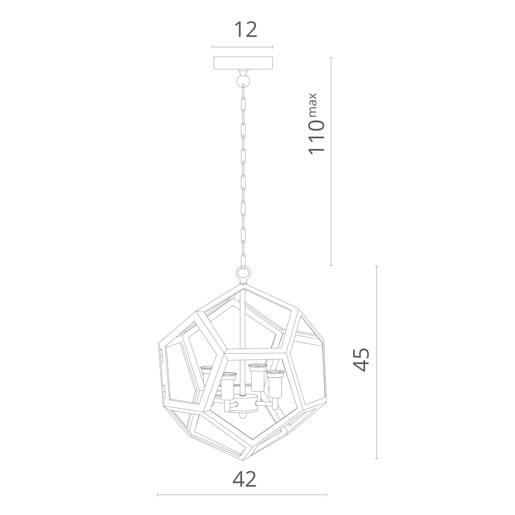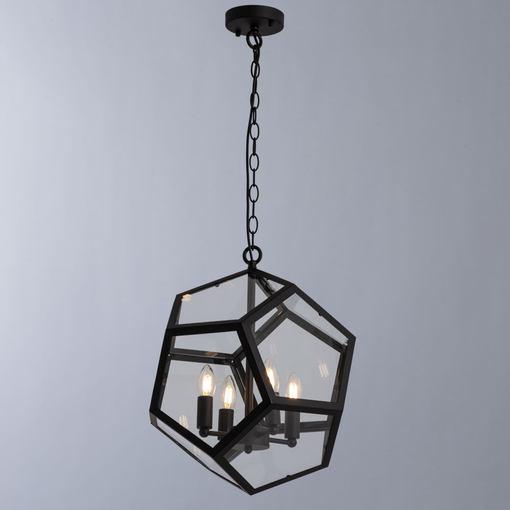 Люстра Divinare 2026/04 SP-4 серии POLIEDRO. Подчеркнет индивидуальность вашего интерьера. Высота 45 cm. Диаметр 42 cm Параметры пылевлагозащиты IP — 20. Плафон стеклянный прозрачный, а материал/цвет арматуры металл/черный. Использует 4 лампы с цоколем E14. Площадь освещения охватывает 8 m². Идеально подходит для гостиной. Страна происхождения бренда — Италия. Вес с упаковкой 8 kg