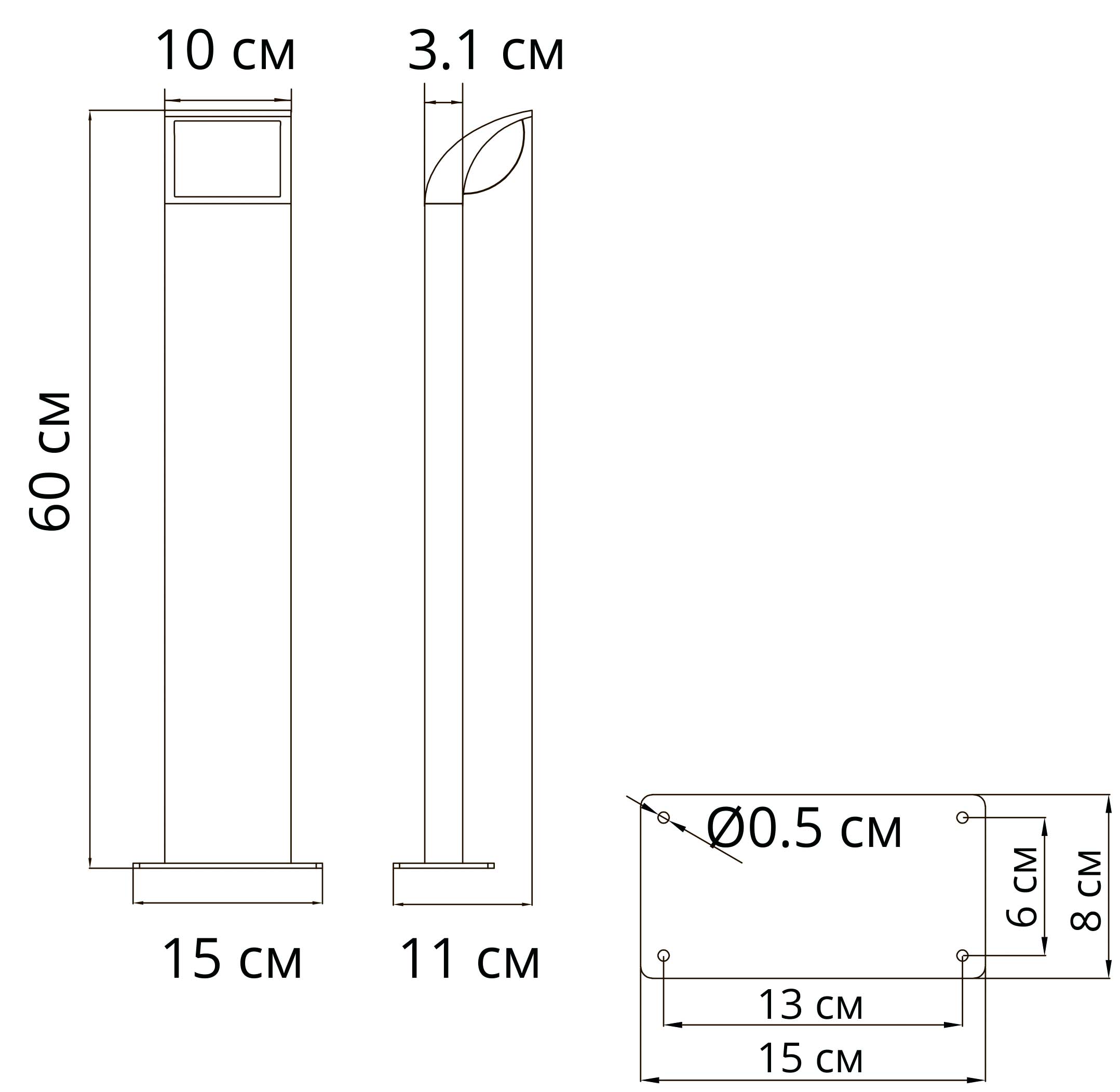 - Площадь освещения