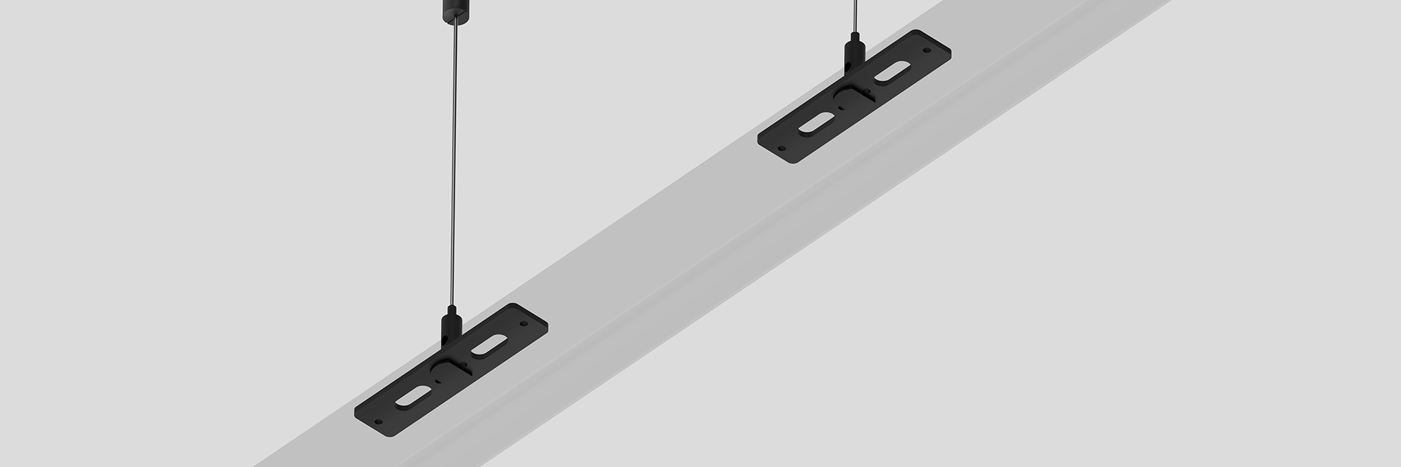 Благодаря качественным исходным материалам подвес способен выдерживать значительные нагрузки и легко регулируется по высоте. Все мелкие детали, как и сам трек, окрашены в черный цвет. Таким образом, итоговая подвесная система выглядит максимально эстетично.