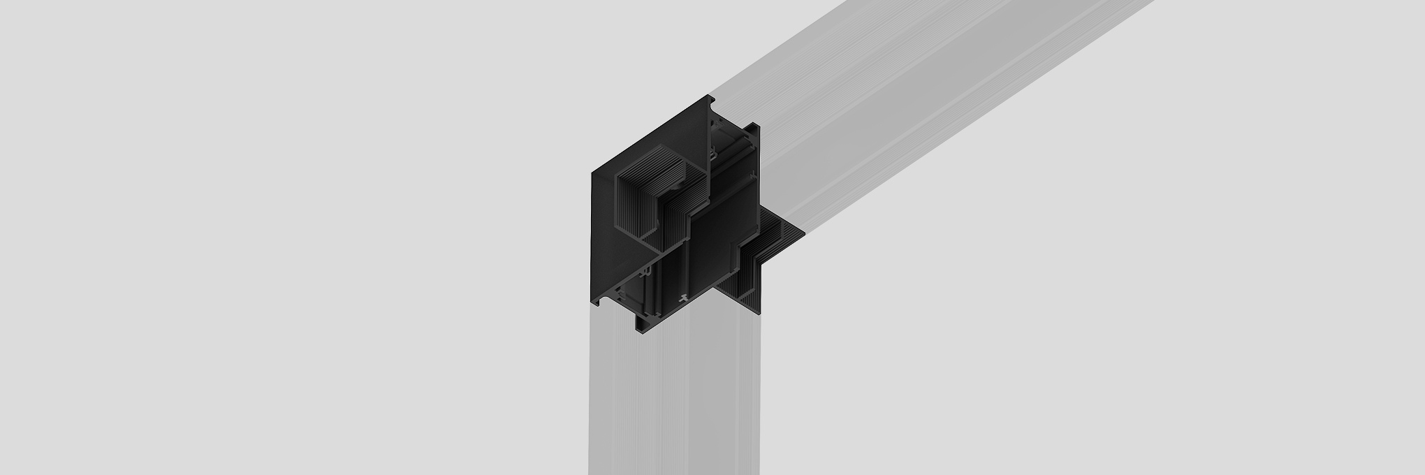 Выполнен из алюминия и полностью окрашен в чёрный цвет. Таким образом соединение получается максимально эстетичным и незаметным.